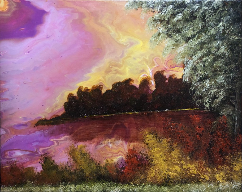 My landscapes are painted without reference but this particular scene is very similar to the view from the small lake at my family’s cottage.