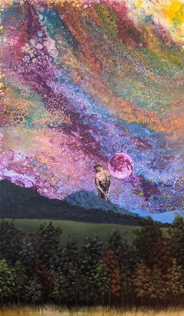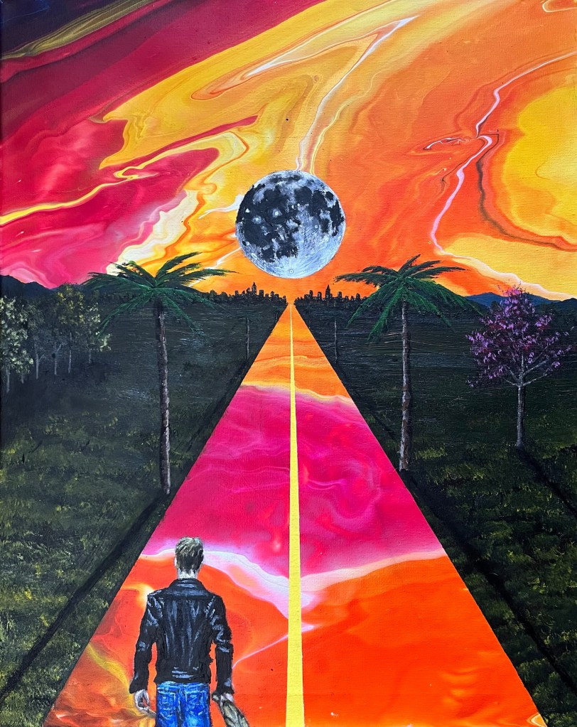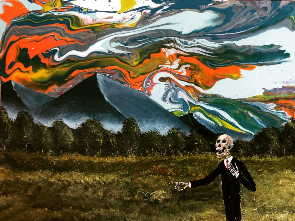 One of my largest dreamscapes. Death fishing is depicting death as a non aggressive figure. He amuses himself and passes time fishing lingering about until it’s your time. The Lemon is a play on the saying “when life gives you lemons”. Next to death the lemon represents a dichotomy and the opportunity to seize our desired life in the window we have.