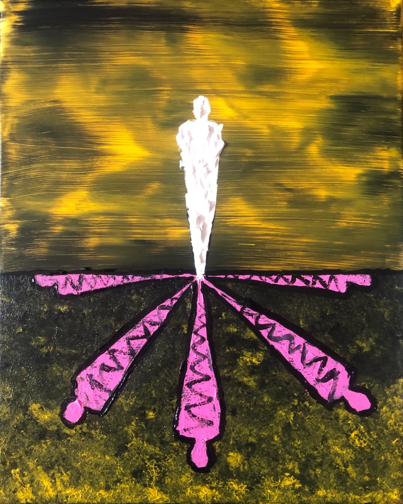 Nothing says contemporary painting in 2021 better than bubblegum pink. This painting is a colourful rendition of a painting I made when i was 16 years old.
